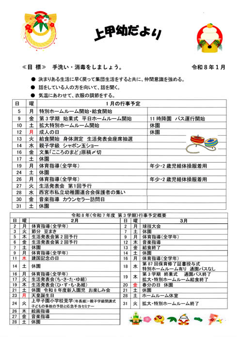 ・登園時間は9時20分までです。遅刻されます方は、給食数の決定がありますので、必ず事前にご連絡をください。9時20分から保育が始まります。