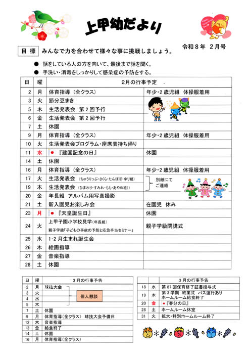 ・朝の登園時間は8時15分からです。それ以前の登園は、早朝預かり保育対象となりますので、前日までに必ずご予約下さい。